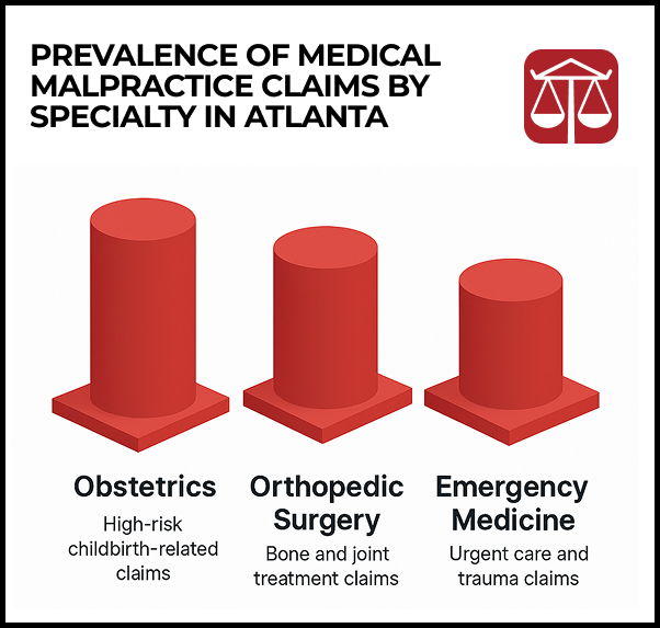 Specialty-specific claims show the highest rates in obstetrics (27%), orthopedic surgery (18%), and emergency medicine (14%) (Georgia Department of Public Health, 2023).