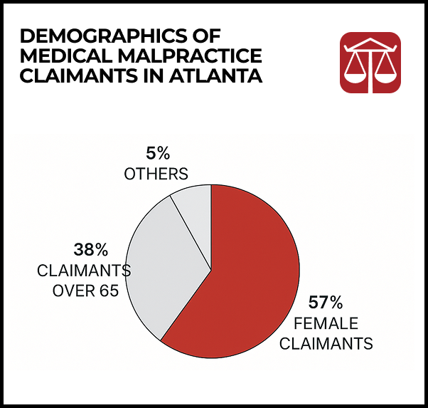 Patient demographics reveal that 57% of claimants are female, and 38% are over age 65 (Georgia Department of Community Health, 2023). The Georgia Patient Safety Coalition reports that preventable medical errors contribute to approximately 1,500 deaths annually across the state (Georgia Department of Public Health, 2024).